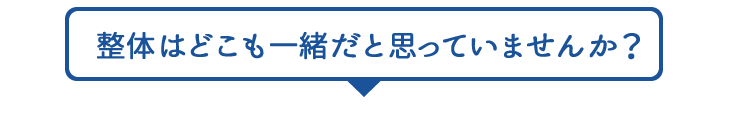 最大手といわれる整体院で月200人以上のお客さまの施術してきた経験をもつ院長自らが施術するので、施術にムラは一切ありません。また、担当が代わらないからこそ、2回目以降ご来店いただいた際に同じことをいうことも一切ありません。